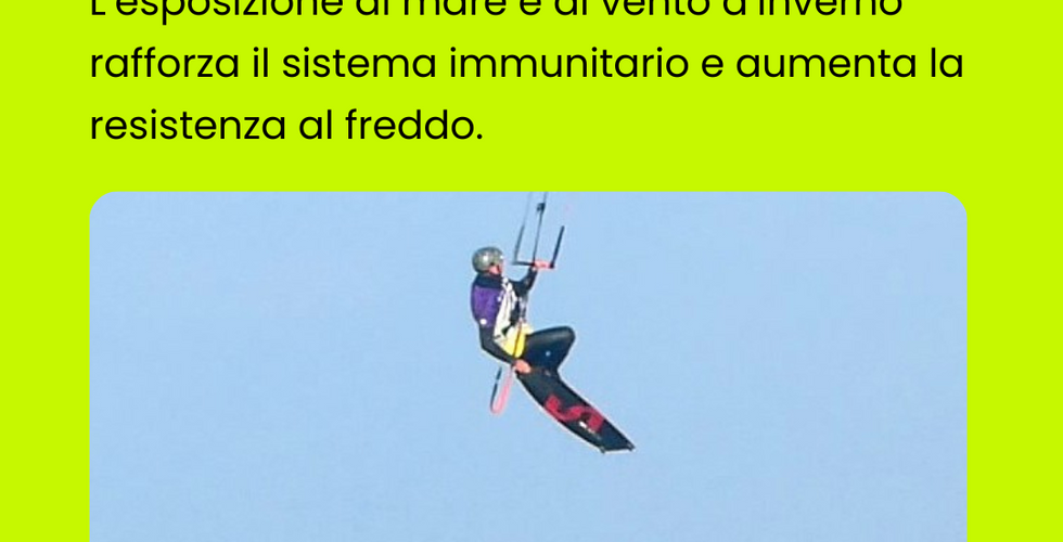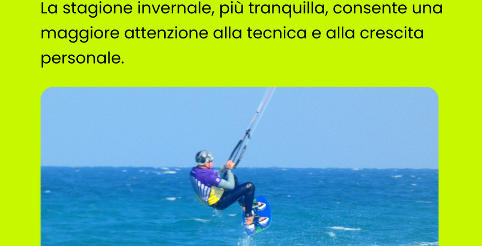 Benefici della pratica del kitesurf in inverno 11 gen 2024Tempo di lettura: 1 minPerché praticare kitesurf d’inverno? 10 benefici che ti sorprenderanno Scorri nella gallery e scopri i benefici che può offrirti, sia per il corpo che per la mente!Voglio scoprire il corso kitesurf adatto a me